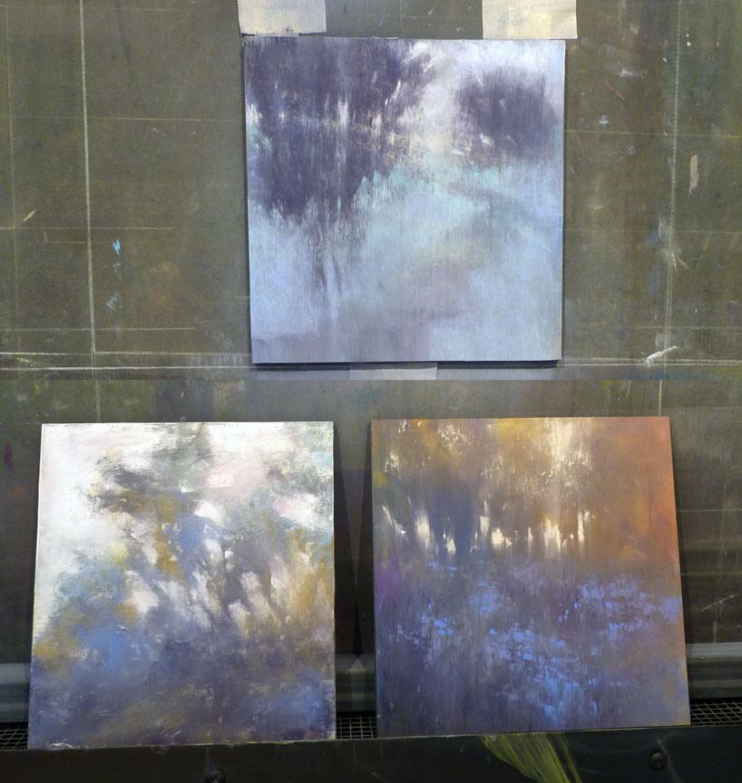 I live in an area where the sky is often overcast. I love these neutral and gray skies, which are made up of many colors. For this sky, I will push the color toward a light yellow. I apply the pastel quite firmly to cover the colorful area of the ghost picture. Later, I will return to the sky with the same color, but the color values are strengthened. With yellow ocher, I place the path, the road, which gives movement to the image. It is also the narrative element of this tableau, since the story I want to tell will reflect the path I choose to follow.